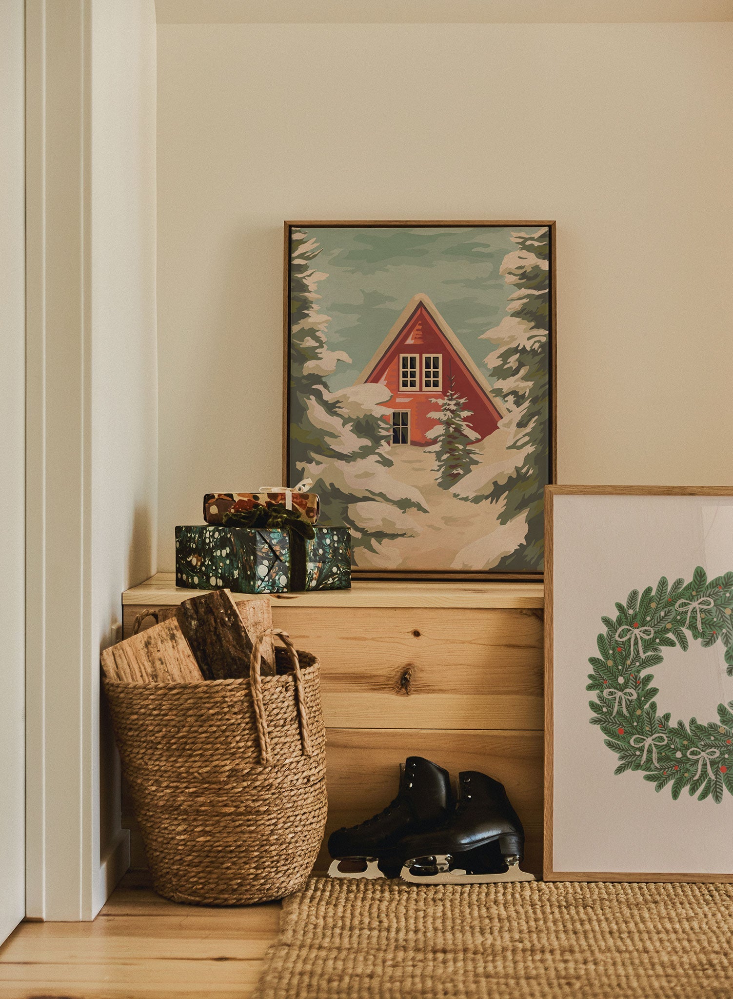 Perfect for a living room or bedroom, this print pairs beautifully with natural wood accents and cozy textiles. Consider placing it above a fireplace or as part of a gallery wall to enhance its inviting appeal. Complement with soft throws and vintage-inspired decor to create a warm, welcoming environment that celebrates the beauty of winter.